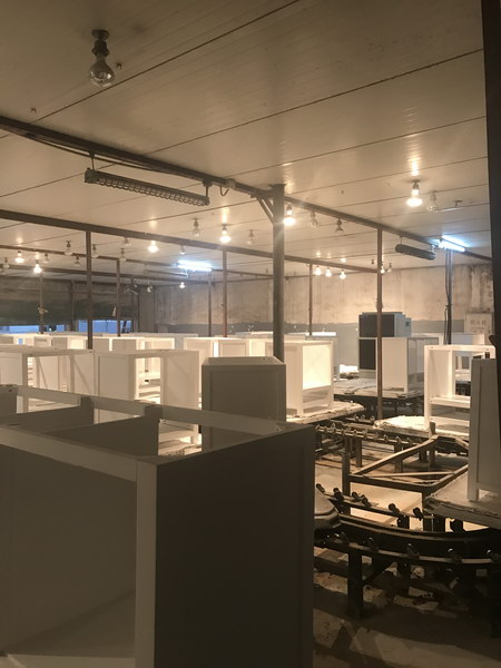 应用分析:400平方水性漆车间流水线作业要升温抽湿,开机工作就要求室内的温度有40℃以上,现场有加热灯加热,因为烘干除湿机开机不会马上把温度做到这么高,需要一定时间,建议把室内的加热灯全部开启保证温度可以达到工作要求,家具上漆后要表面晾干,烘干除湿机主要是除湿机作用,辅助升温,使用2台CGF7.0/SN和加热灯一起工作可达到理想效果。
