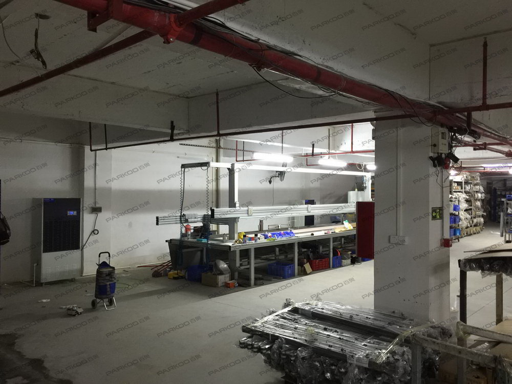 经计算,我司使用面积配置1台每小时12公斤除湿量、3台每小时6.8公斤除湿量的除湿机对仓库区域进行湿度控制;使用一台每天除湿量为58升的除湿机对办公区域进行湿度控制。